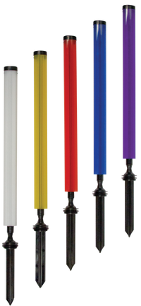 Ny og forbedret fleksibel markeringspæl Kan køres over med maskine eller clubcar fra hvilken som helst retning og den vil vippe op igen Fundament sælges separat