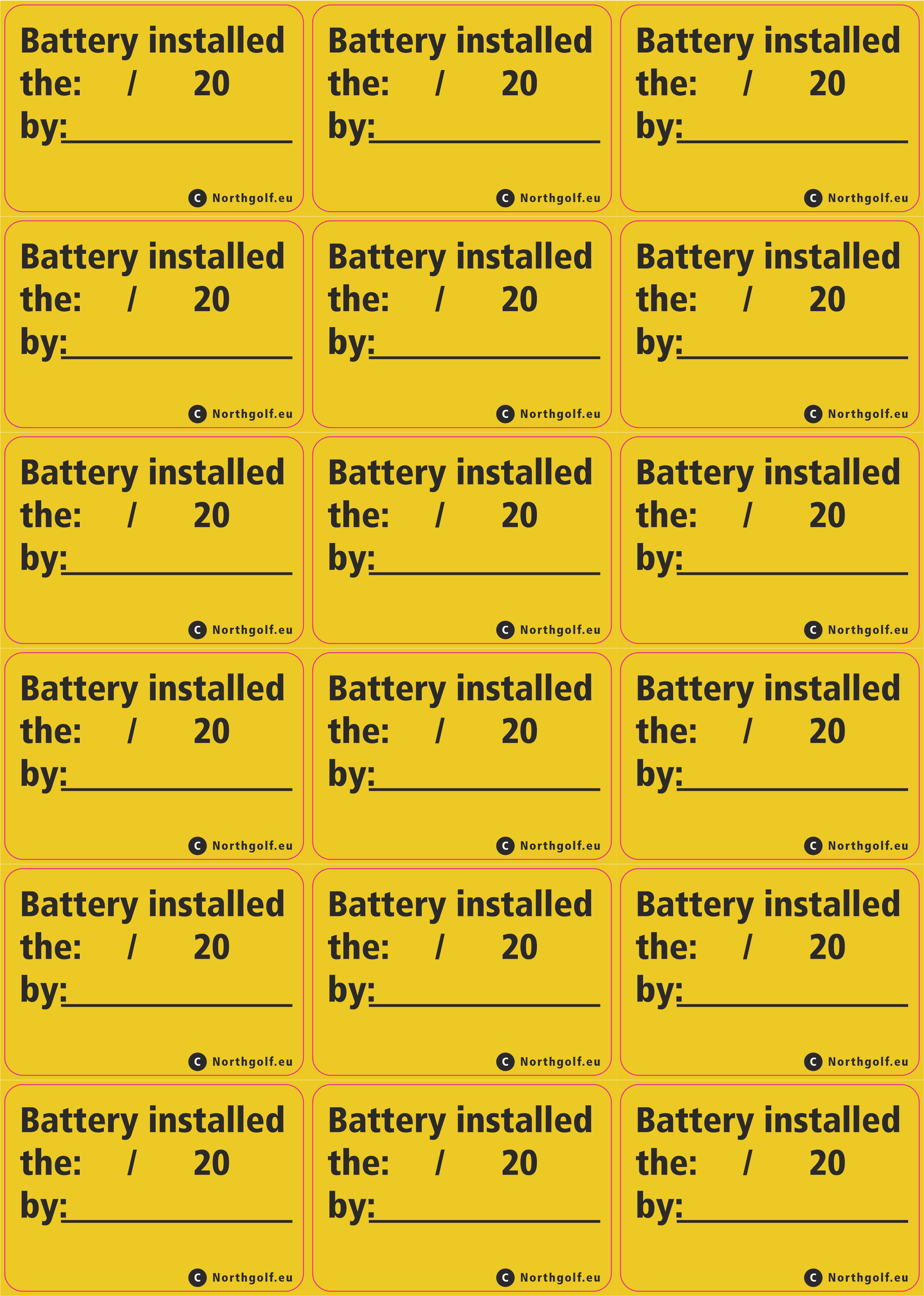 Tekst: 'Batteri monteret den:___ /___ 20__ af:____________'