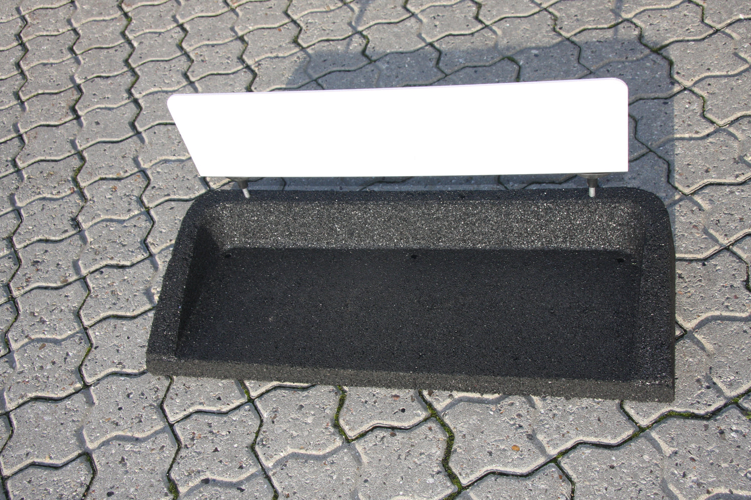 Sandwich skilt til boldmagasin. Hvid med afrundede hjørner for oven og med 2 special designet holdere som sættes ned i boldmagasinet