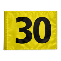 Driving range distance marker flag 30 m, yellow with black digits, double 115 gram fabric