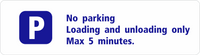 Parking sign for wall: No parking loading and unloading only. Max 5 minutes